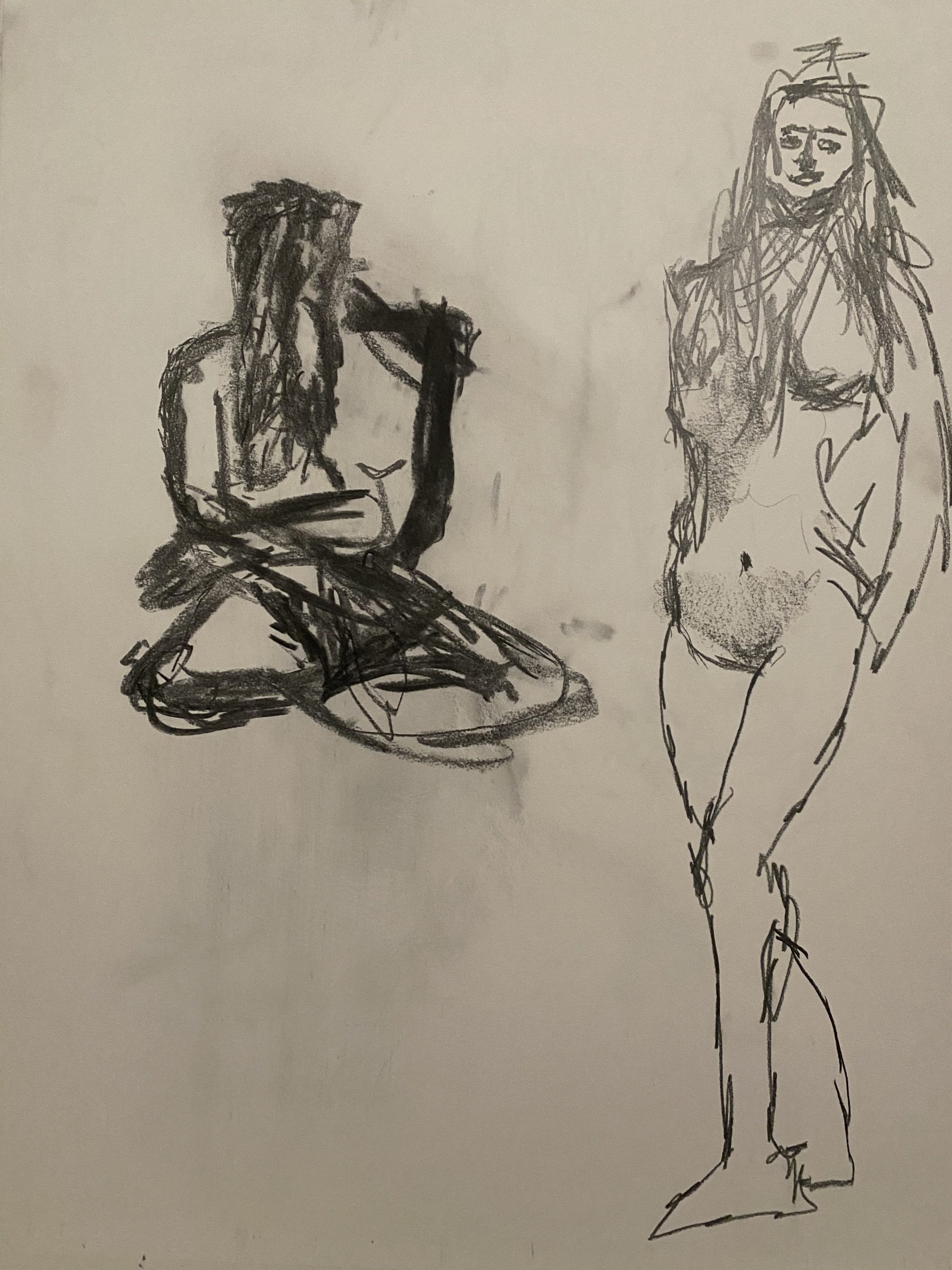 Julio Escarce, "Meditative Nudes," Spring 2022, pencil and charcoal on paper, 24 x 18"