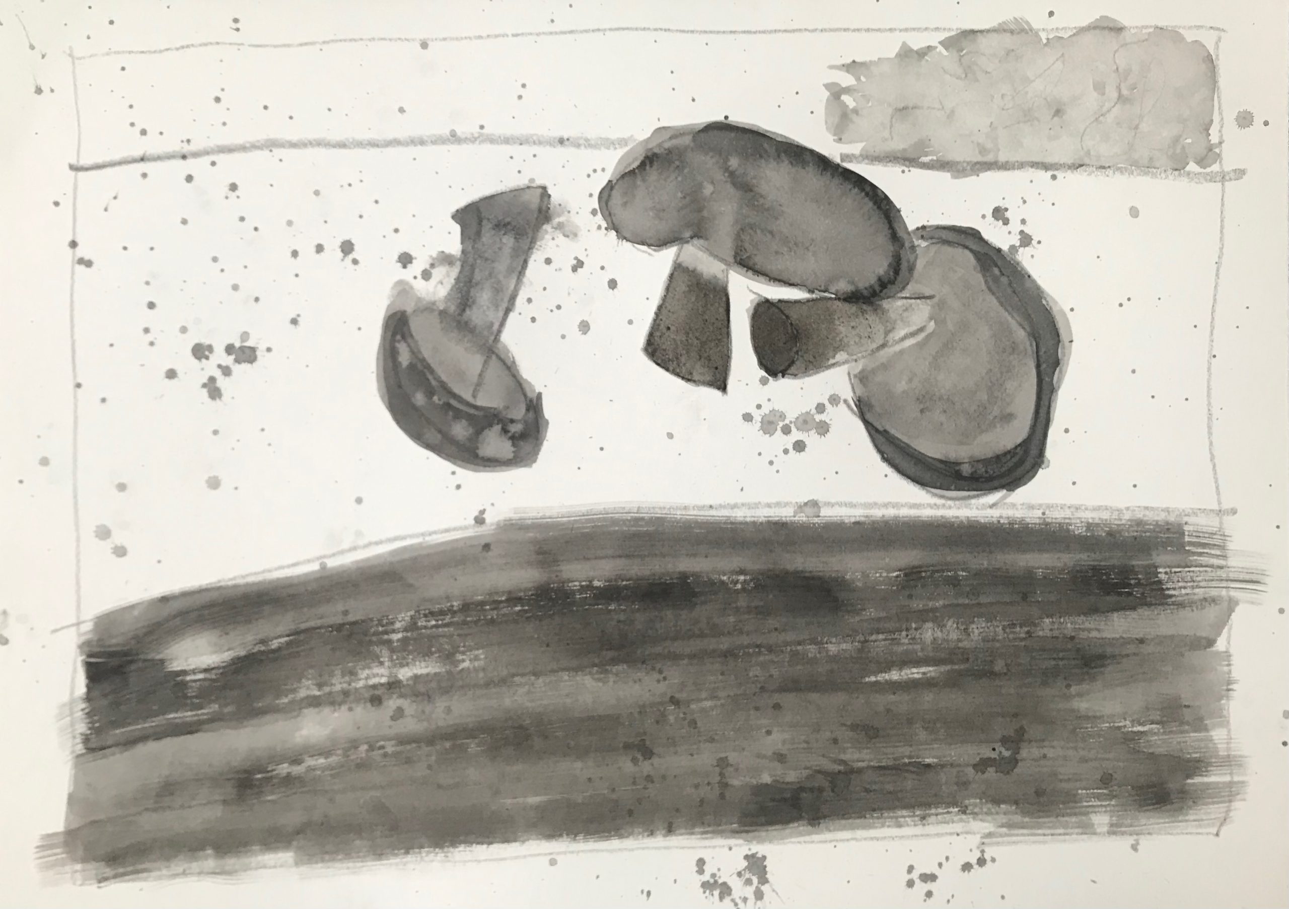When I reunited with far-flung family after a longer time apart that ever before, familiar details of daily life took on new significance. Taking a drawing class remotely heightened my awareness of these simple pleasures. I slowed down and savored “gathering”, both of family and of these unusually abundant edible-delicious wild mushrooms.