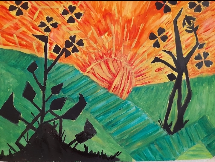 I used watercolor. First I drew in pencil then needed to wait for watercolor to dry to continue.