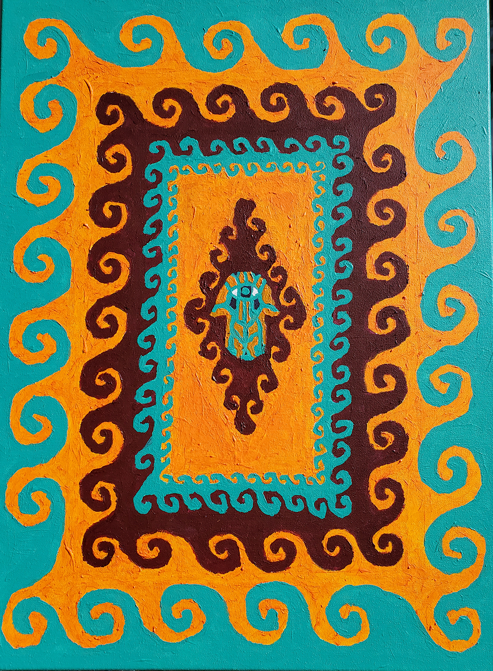 I was supposed to find a pattern and make a painting. I made this while being pretty dumb in how to manipulate paint so this was me being experimental, not knowing if I was gonna get what I wanted. A wave function that copies but loses 50% every color change as it approaches the thing it cannot touch, the hand of who shall not be named gives guidance to those that watch which direction its fingers point stands in the middle with its fire that can never burn a thing as fire needs something in order for it to burn.