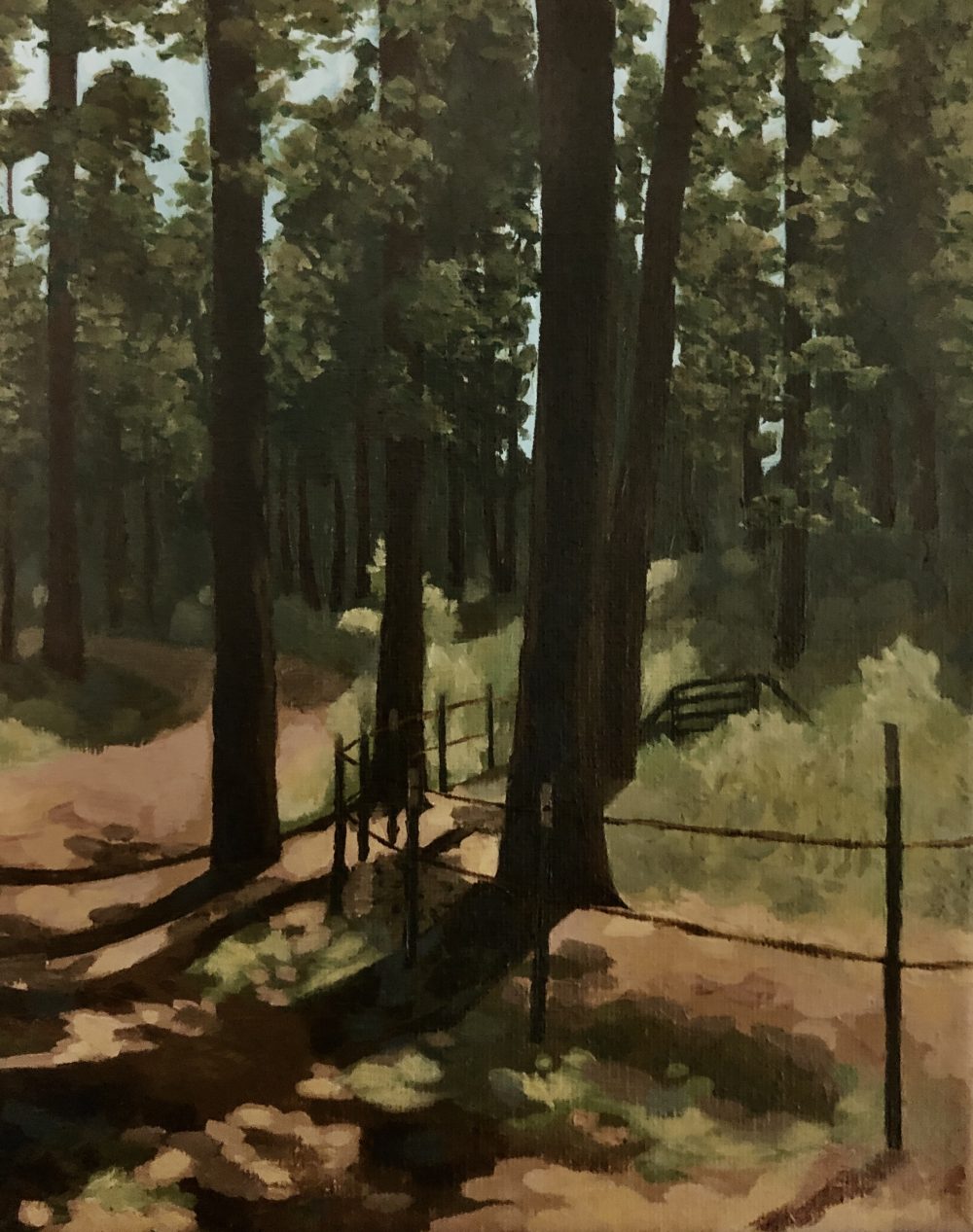 This is a painting of a vertical landscape that focuses on value and contrast. The scenery is a forest trail in Old Station, CA which I've visited several times. The nature is really beautiful because it is remote so I wanted to capture the patterns of the sunlight cascading through the trees. I tried giving the light a soft appearance to contrast the dark trees in order to capture the area's warmth and majesty.
