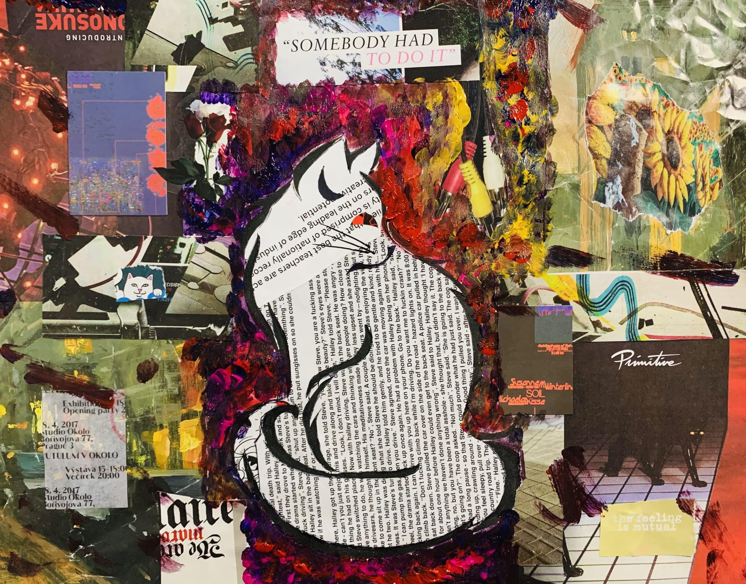 For this assignment, I wanted to create a "scrapbooking" feel so I took different pictures out from magazines and pictures. I decided to put a cat as the main point in the painting, then have other pictures complement the cat. I added some acrylic paint on the outside to include as other form of media in the piece.