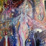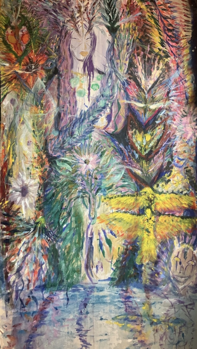 Another strange dream that started as Cybele the greek mother goddess as earth spitting out flowers dancing like fire as a Quariwarmi (non-binary Sage to Chuqui Chunhay an Incan Puma Deity) sang in Quechua across water surrounded by creatures flaming flowers and crystals. My pops is Peruvian with Indigenous descent and he told me stories of these old Peruvian myths that still appear in different forms in strange dreams for me whether I like it or not. I mixed these Greek/Roman intersex and non binary myths with Incan to show that there have always been trans/nonbinary/intersex people even in our ancient myths.