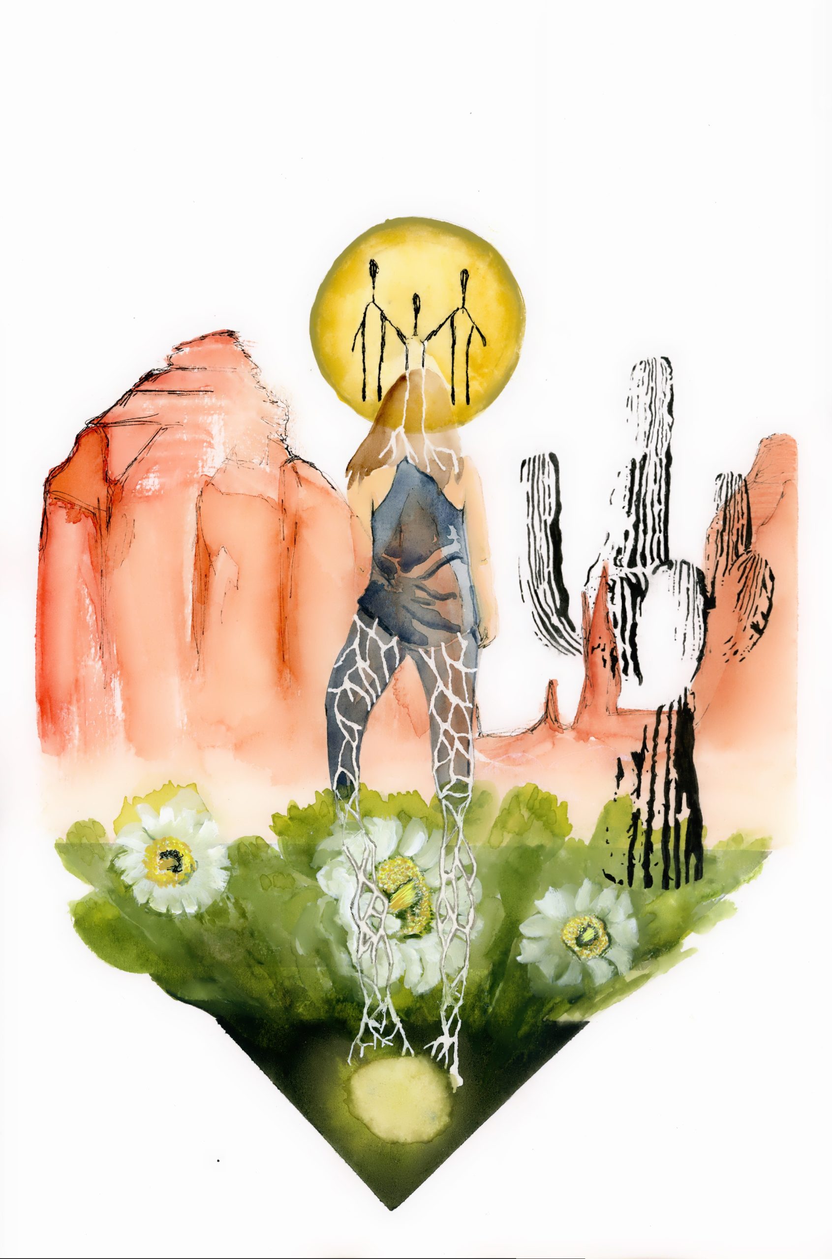 This piece was our final project where we focused on open forms and transparency using watercolor. My image represents many themes including adoption, personal identity, and family roots.