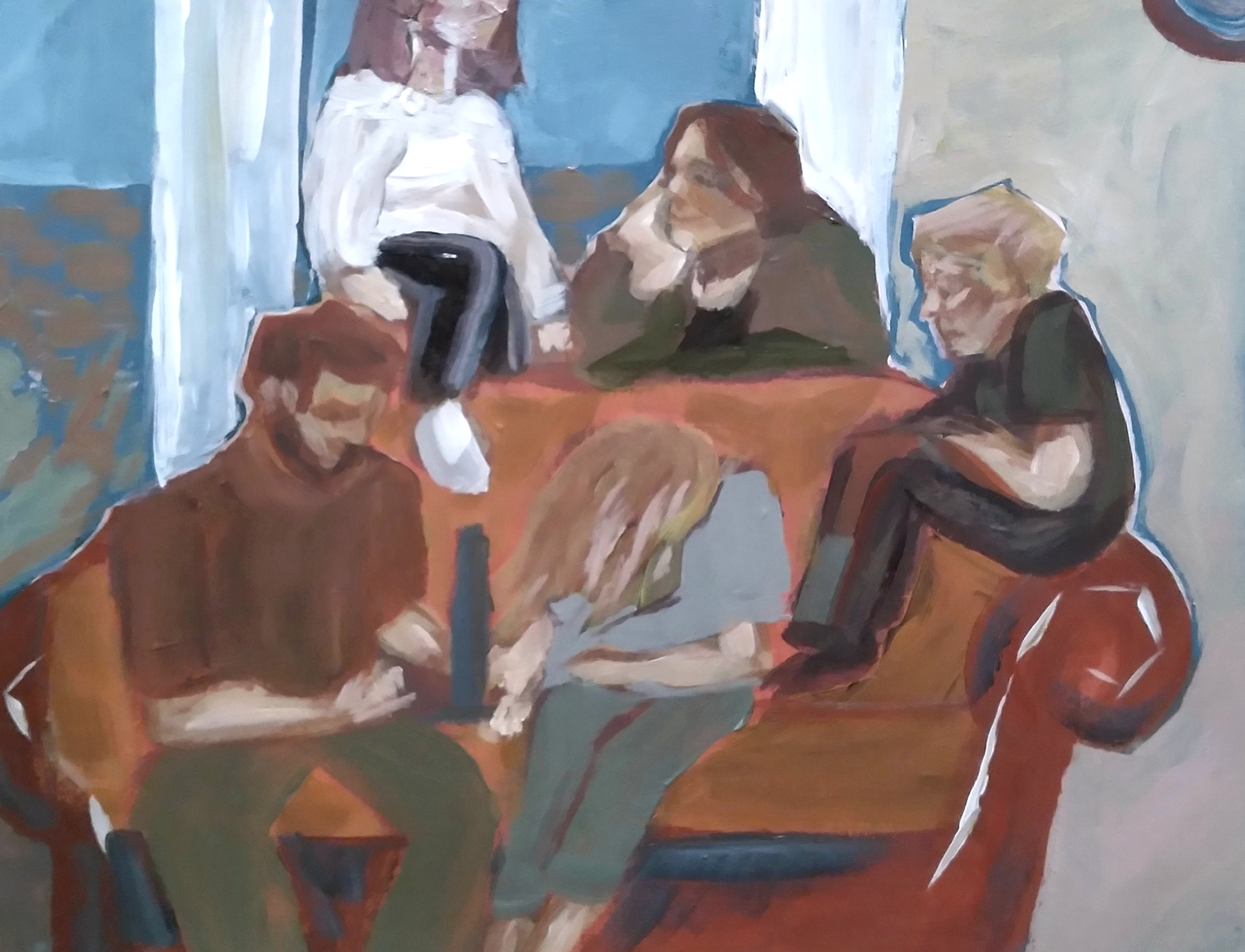 This painting is a class project in which I worked to depict a group of people in an indoor setting. For the subjects, I chose a photo of my cousins and I at Thanksgiving from a few years ago. This piece relates to themes of nostalgia and familial love.