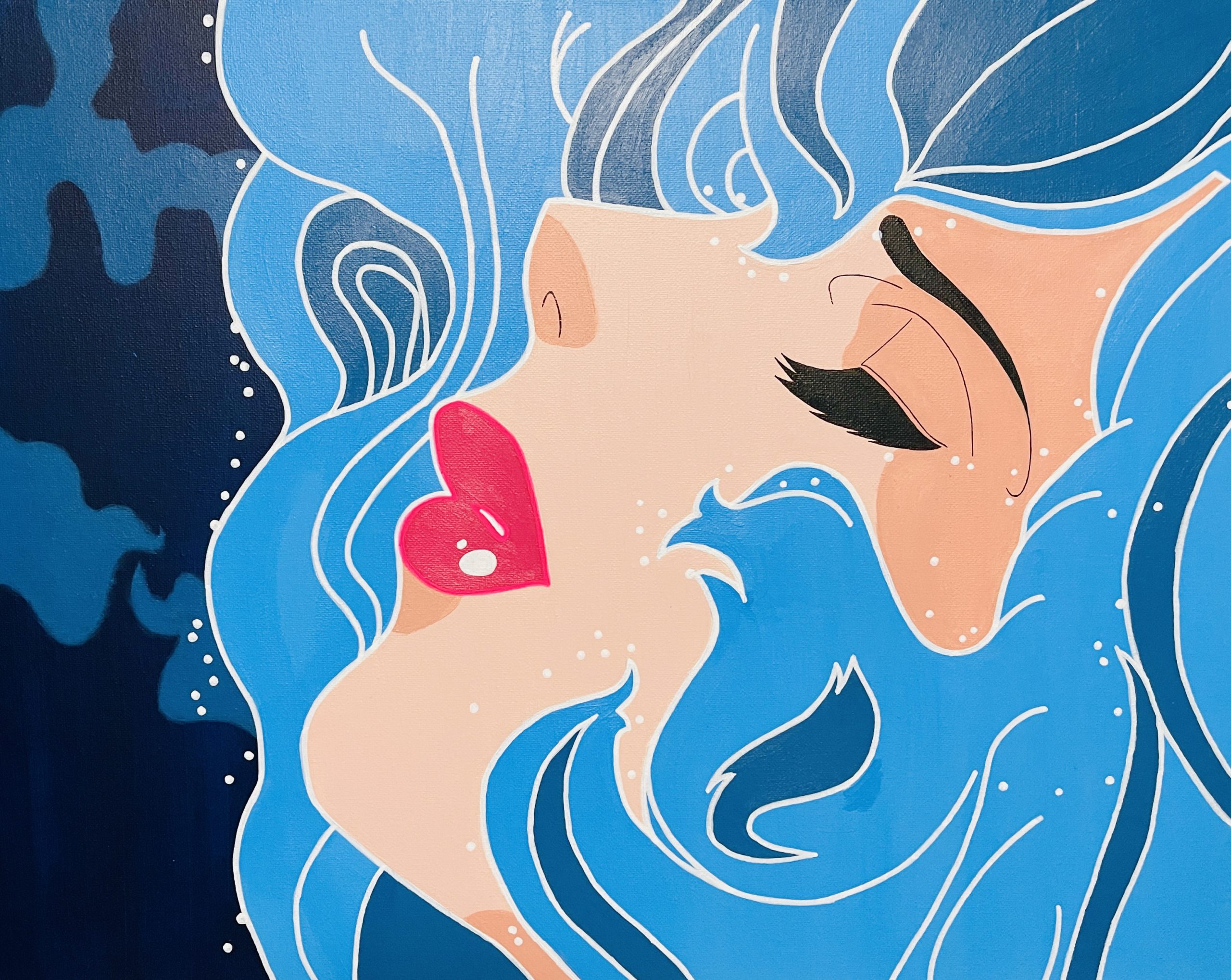 This is an artwork that I did in my painting one course, and the function that I decided to go for out of the seven parts of art was hope/peace. To represent hope, I decide focusing on color and which color suits the word hope. The color that I chose to use mostly throughout my painting is blue (different shades) to show a sense of peacefulness, comfort, tranquility, and relaxation. Since I discover that the color blue can help calm your mind, slow down your heart rate, lower your blood pressure and reduce anxiety and is essentially soothing. Another reason why I chose this color is because of the function I decided on; Hope! Even though blue might not correctly represent hope, for me, it does. I used it because we should be at peace and faithful to be hopeful. That's how I felt throughout my painting session, very relaxed and at ease because of the color blue, enjoying every moment of it. I used a canvas, acrylic paints, pens, and a Sharpie.
