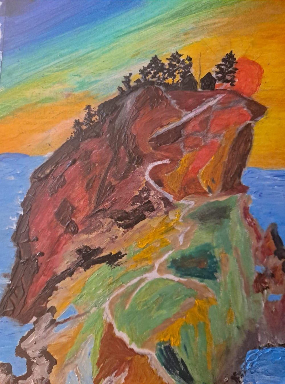 It was really just trying to imprint the layers of the shadowing of the depth of the mountain. This particular scene is so heartfelt to me. I couldn't help but to draw it to hold it near my heart.