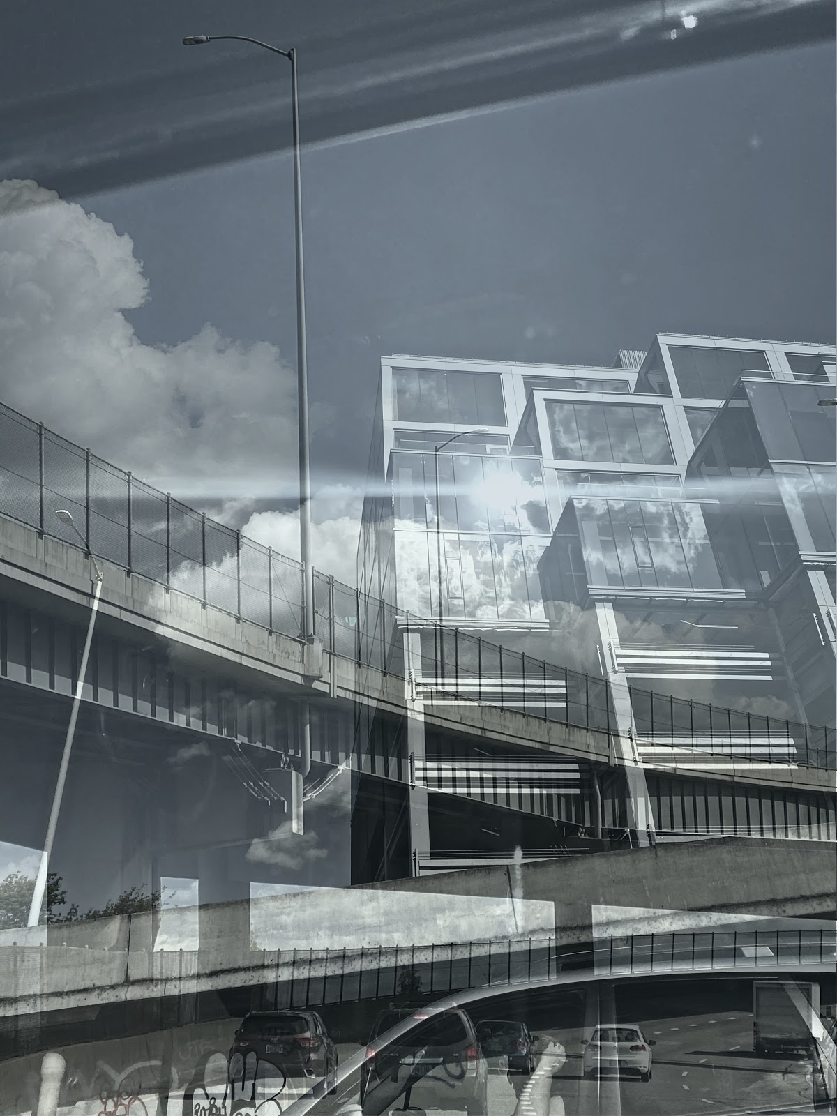 Combine the two photos together we will see the whole different world, the whole different point of view about the objects. Love the dreamy vibes that fly around, love to look at the way everything shows up next to each other. Making the inner soul want to get out and fly together with things around to view the city, the light, the bridge. I took these two photographs when I was doing the project in Art 140! This photo was taken of the building and the bridge of downtown Portland. I put two photographs together to create the "sandwich" photograph where we had to combine two photographs into one. I also did some adjusting to the photo by lowering the images' colors and the saturation since I want these two to create like a look into one for the city.