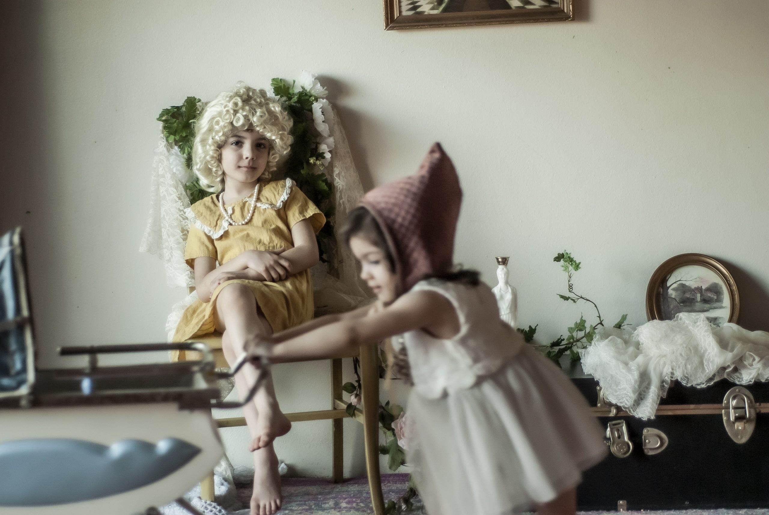 In this photo I am exploring how children use costumes, the space around them and their imaginations when they play. I use pastels and bright natural lighting to give the scene a feeling of innocence and happiness.