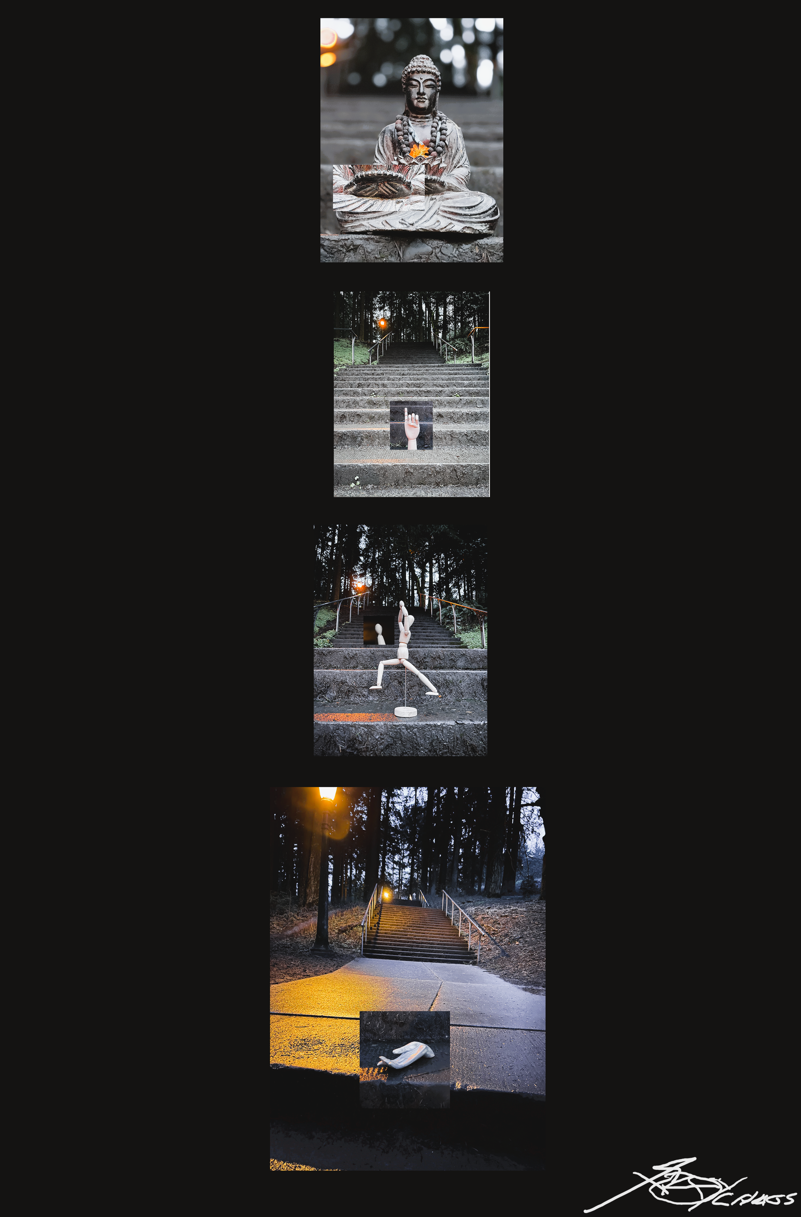 This was done as a project in Visual Narrative, Winter 2022 with Chris Knight. Signifying a hard journey, or "dark night of the soul" existential journey that we have all been taking alone these past couple of years: first, the offering for the task at hand (the beginning) , then the spiritual crisis one has to face in self-reflection (inward and upward), followed by the commitment of our inner warrior (the journey wanes as it shortens), finalizing (or a new beginning) by the offering of another.