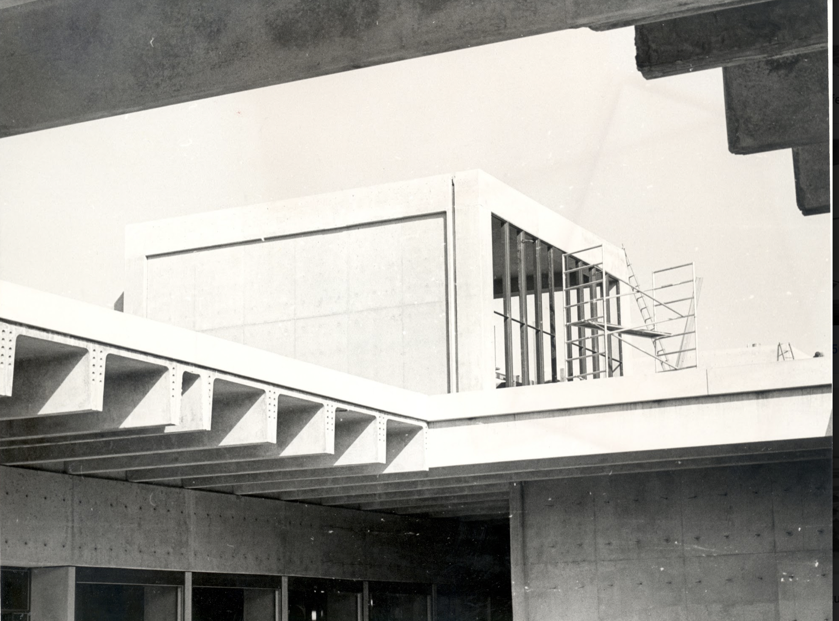 Photograph of the CT building under construction with a view into the North View Gallery. 1968.