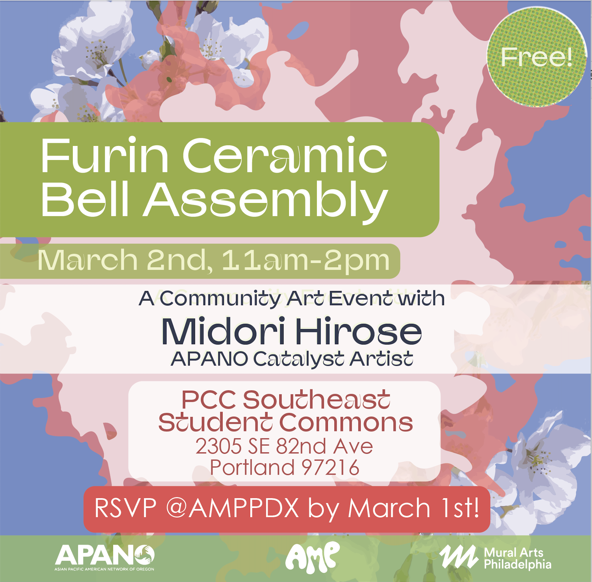 The ceramic bell-making workshop invites the public to make their own interpretations of furin, Japanese “wind bells,” with the goal of building community connections and engaging in discussions about the past, present, and future of the Southeast Portland area.