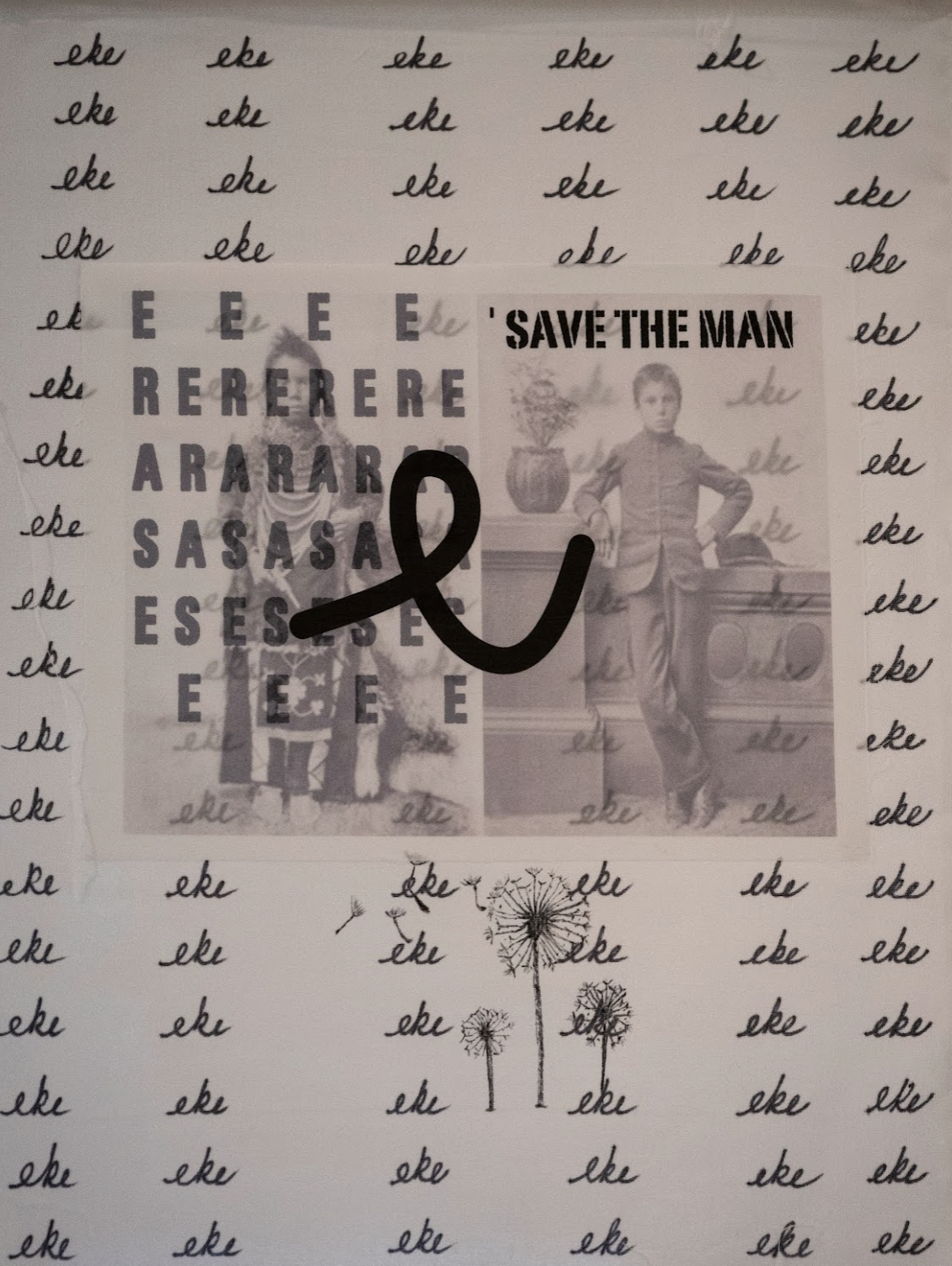 Rochelle Kulei Nielsen, “E is for Erase” digital print and drawing on cloth, 2021. Photograph: Jordan VanSise.