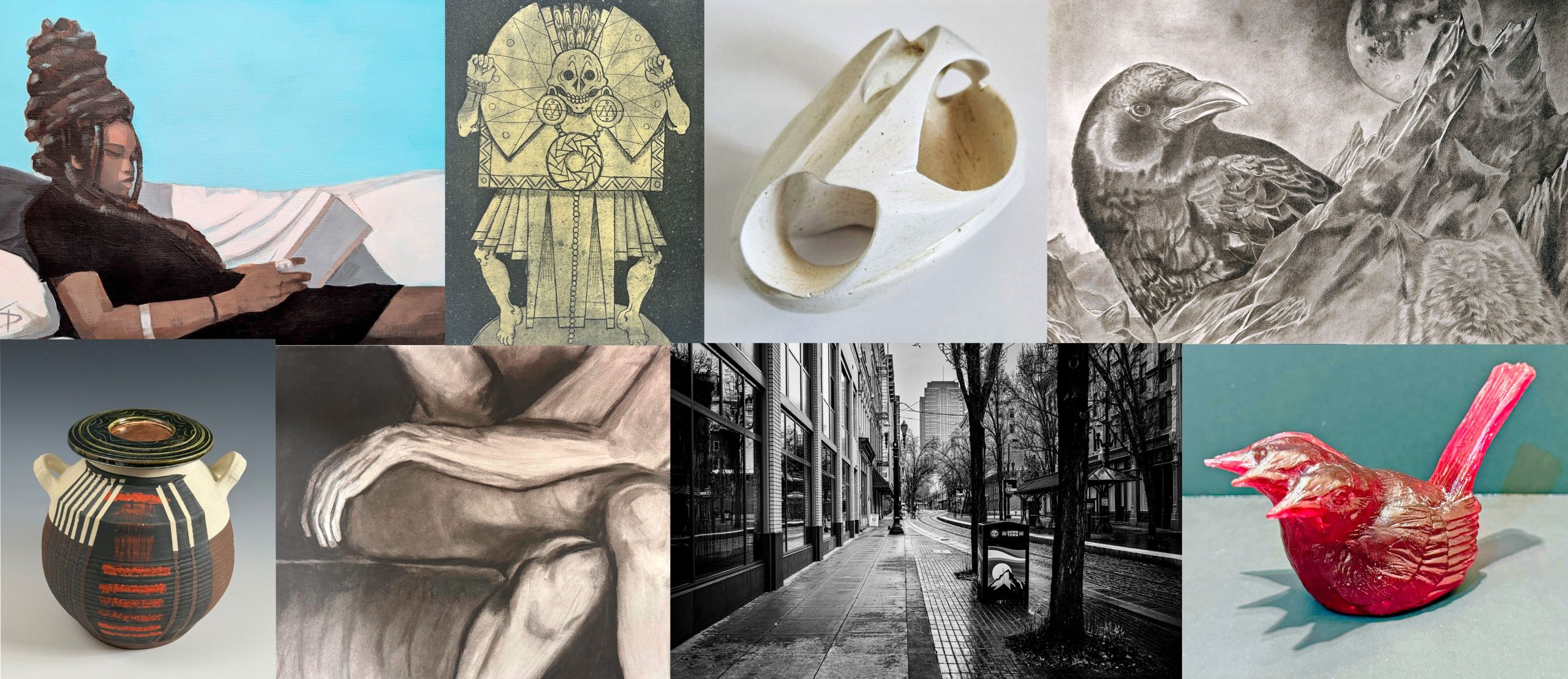 All of the work submitted to the Helzer Gallery will be on display throughout the central Mall area of Building 3 at the Rock Creek Campus. Our juror, Jess Nickel, selected works to be displayed within the Helzer Gallery and will be selecting five artworks to receive a Juror’s Choice Award and one to receive a Best in Show Award. Please come to the awards ceremony to celebrate the amazing artwork, hear some comments and observations from art faculty and juror Jess Nickel, and prize winner announcements. We will also be distributing a People’s Choice Award, selected by the public.
