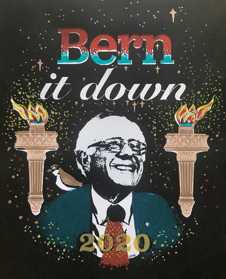 Jessica Allison-Bourne, Bern It Down, 2020, acrylic screen print on cardstock, 11″ x 8.5″