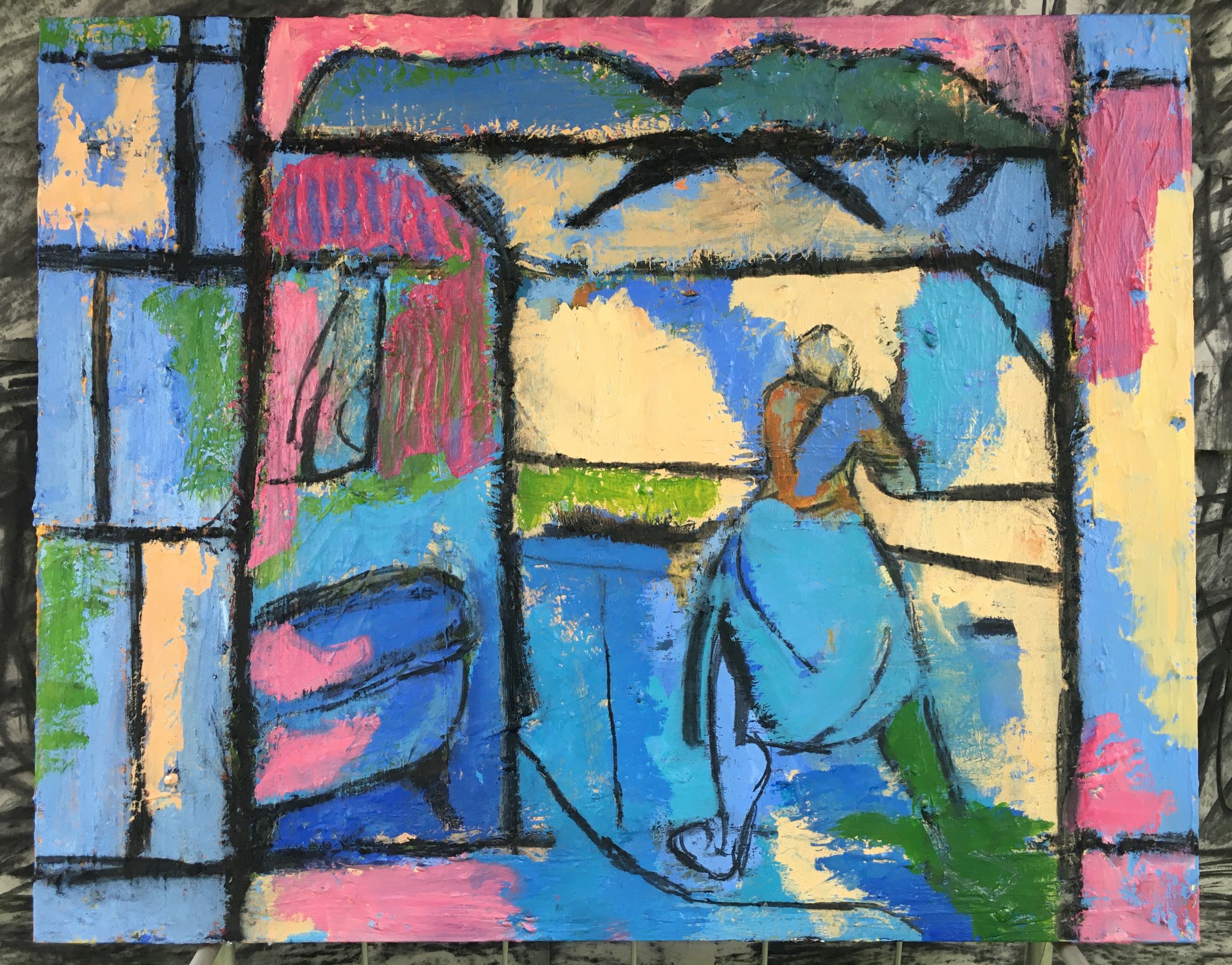Gus Bertram, Bathroom Painting, 2020, acrylic and charcoal on canvas, 24″ x 30″