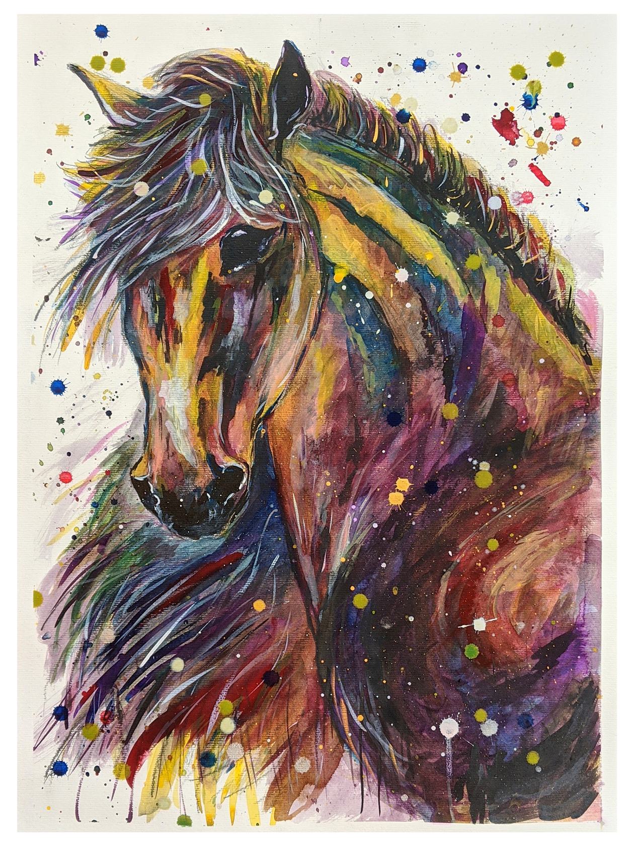 Joey DeSilva, Stallion, 2020, graphite, ink and acrylics on watercolor paper, 23″ x 16.5″