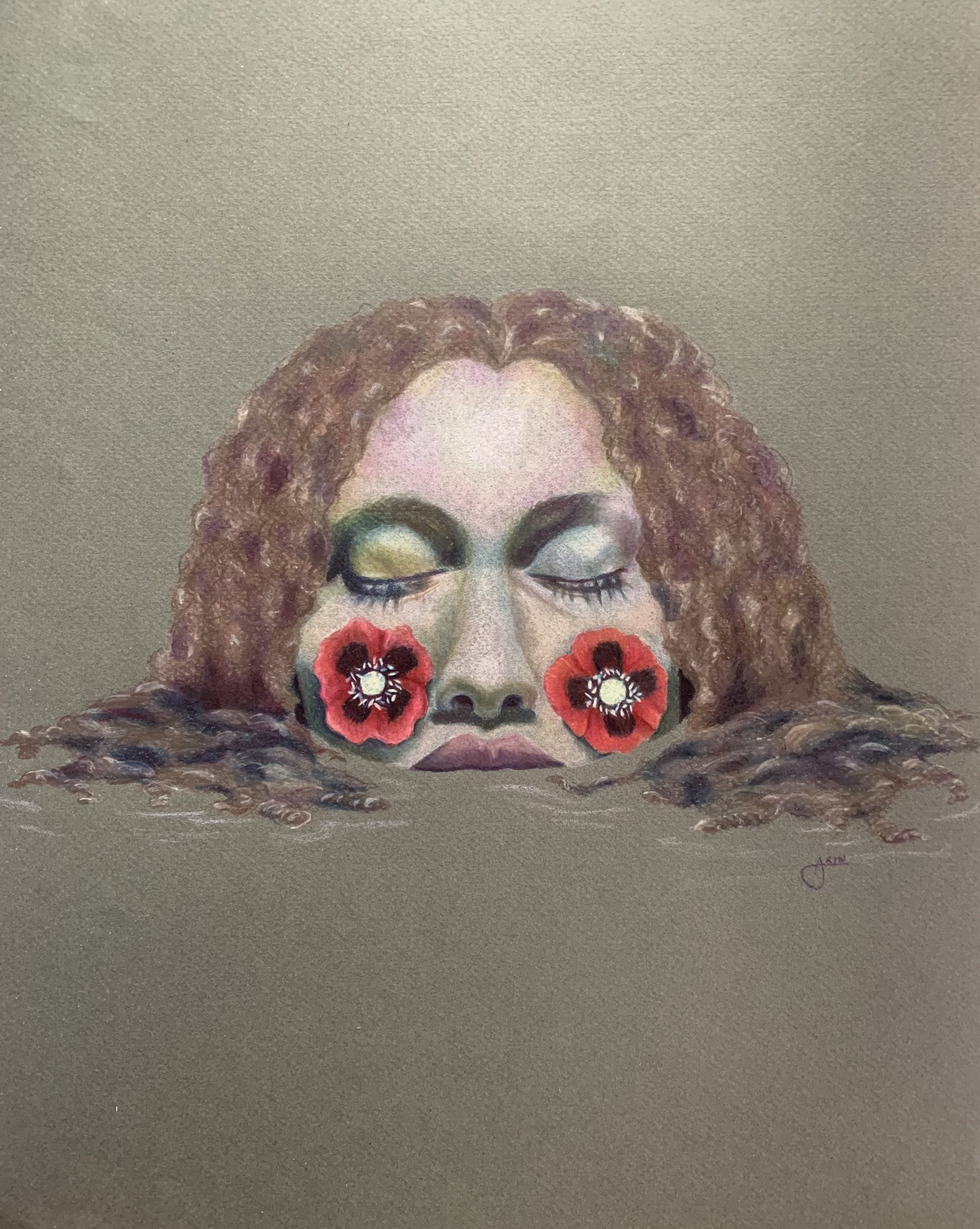 Arin Jenkins, Sweet Opium, 2020, prisma colored pencil on paper, 18″ x 13″
