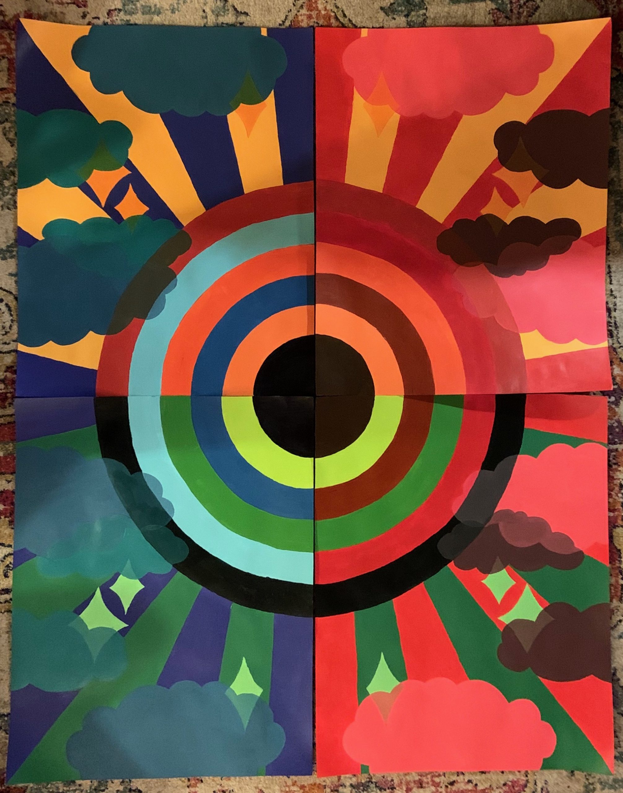 Tuesday Jones, Untitled, 2019, acrylic paint on bristol paper, 4 individual pieces of paper, each 24″ x 18″, 48″ x 36″ total