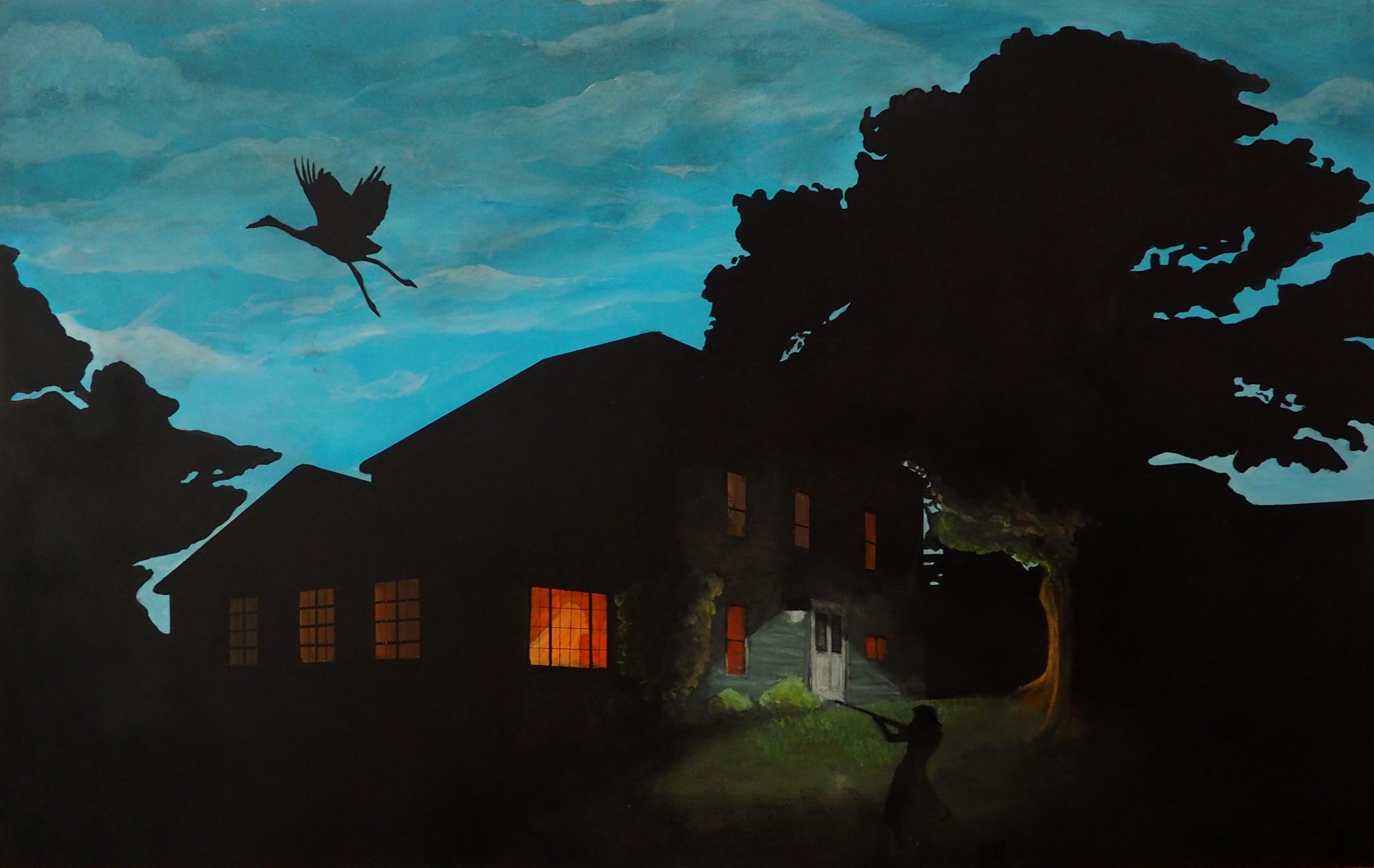 This Crane Wife (Tsuru no Ongaeshi) is a Japanese folktale of self-sacrifice, in which a woman (as a crane) plucks her feathers to weave wares for her husband to sell. This piece explores a woman's autonomy and the rejection of these prescriptive roles.