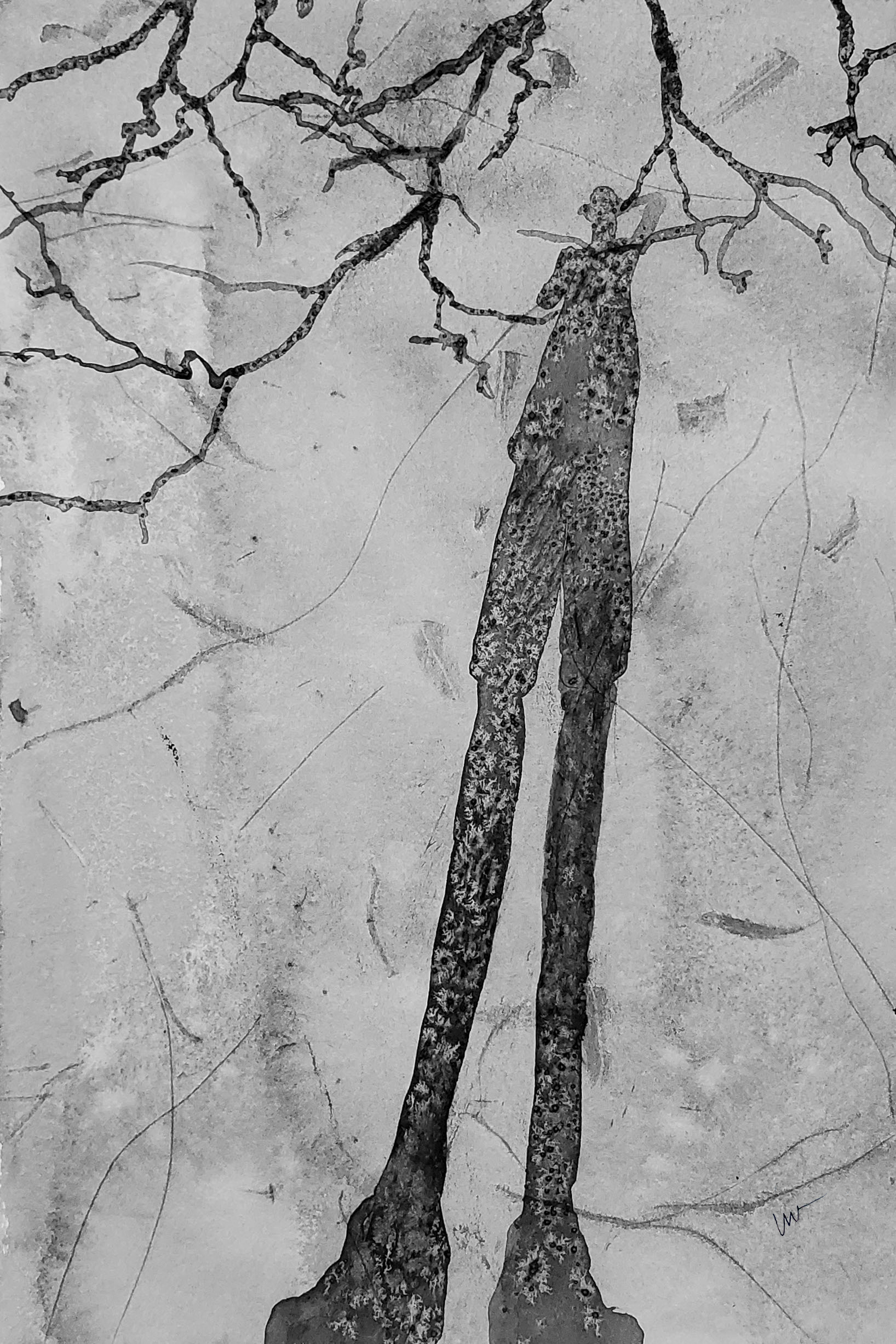 This is a journal painting from Shelley Chamberlin's Water Media course where I experimented with textures by scraping the paper and adding salt to ink washes.