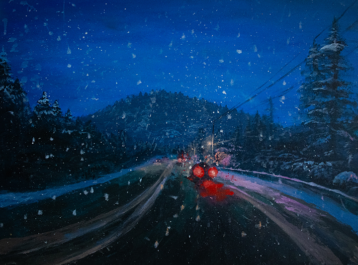 This acrylic painting was for a landscape painting assignment. The primary focus for this painting was to practice rendering what I observed in a photograph I took, specifically colors and perspective. The theme/concept I had in mind was isolation and nostalgia.