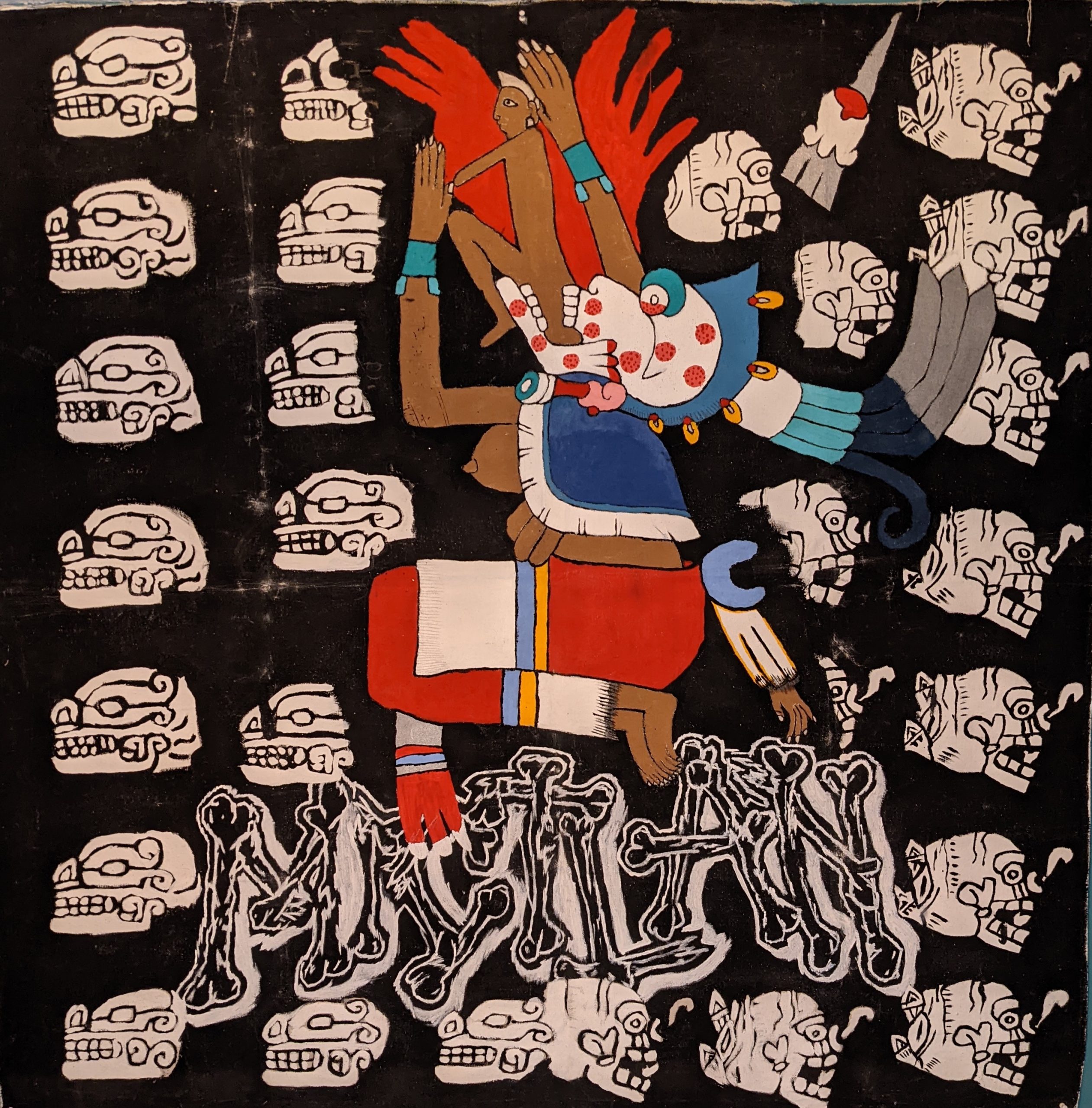 This piece is an inspiration after I did the drawing of Bruja Antigua (Ancient Witch). It is a representation of Mictecacihuatl the Goddess of the underworld in the Aztec mythology, It represents transformation and rebirth.
