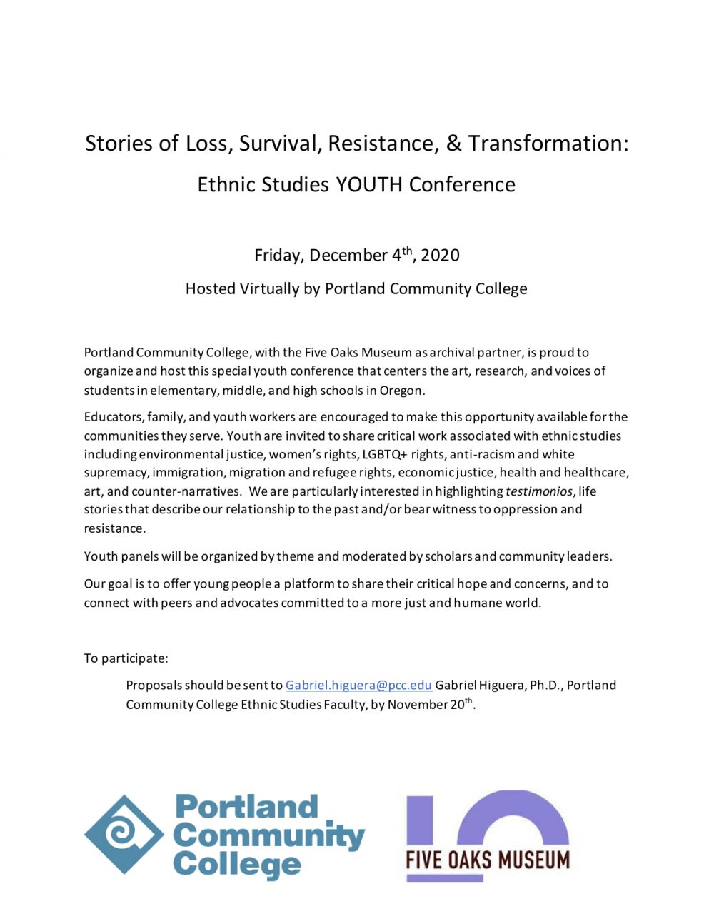 Stories of Loss, Survival, Resistance and Transformation: Ethnic Studies YOUTH Conference
