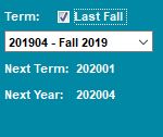 To change the term: Uncheck the “Last Fall” checkbox and select the desired term from the drop-down menu.