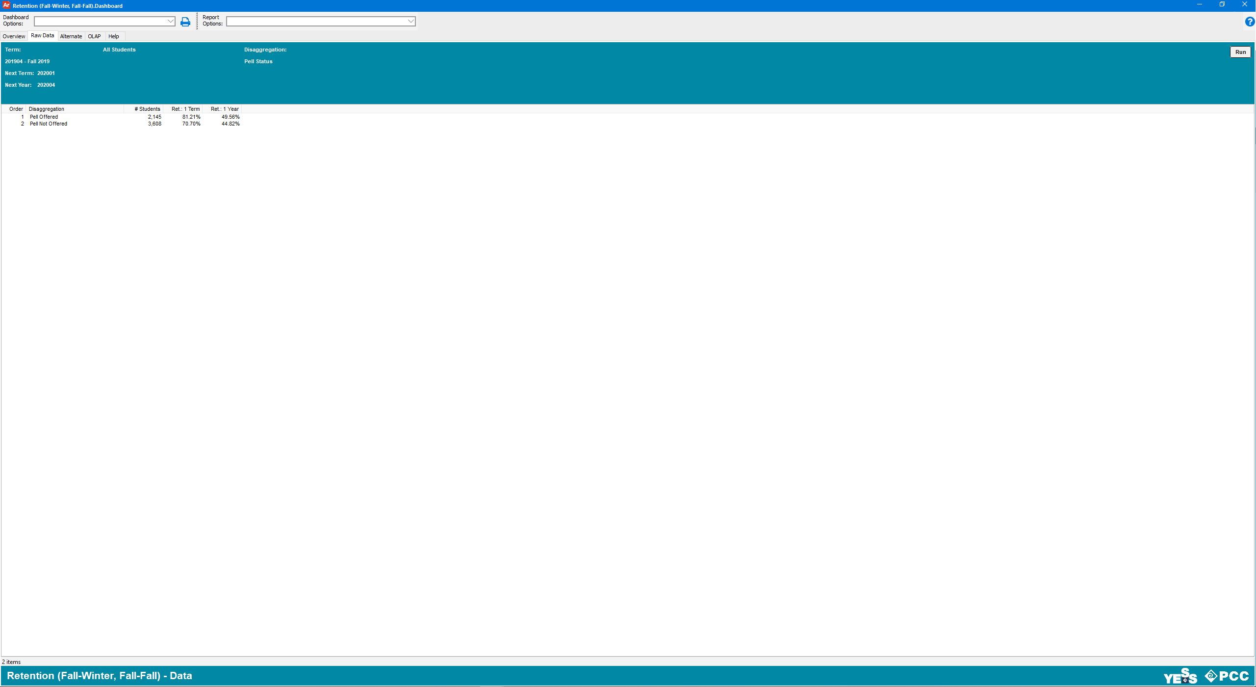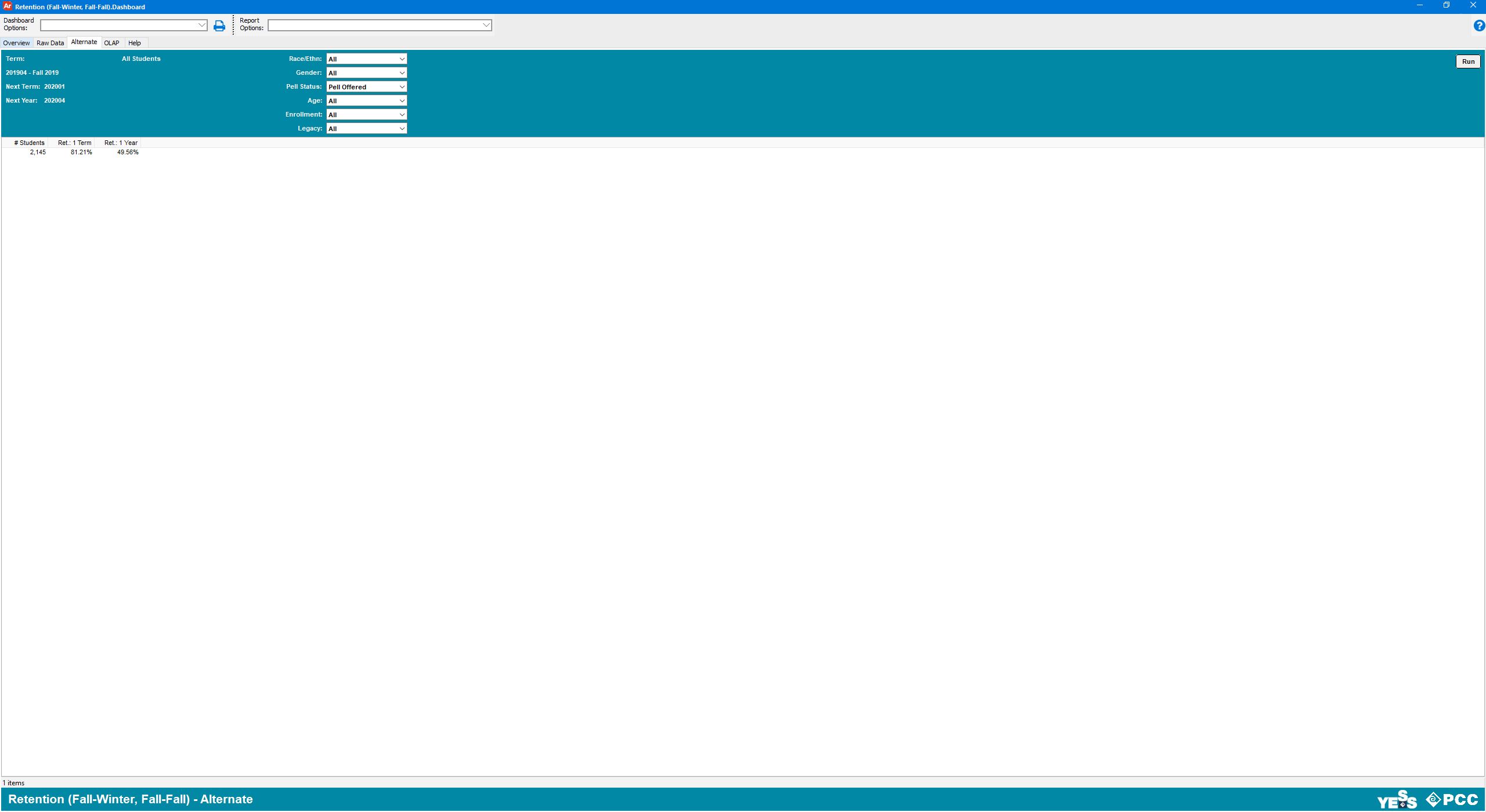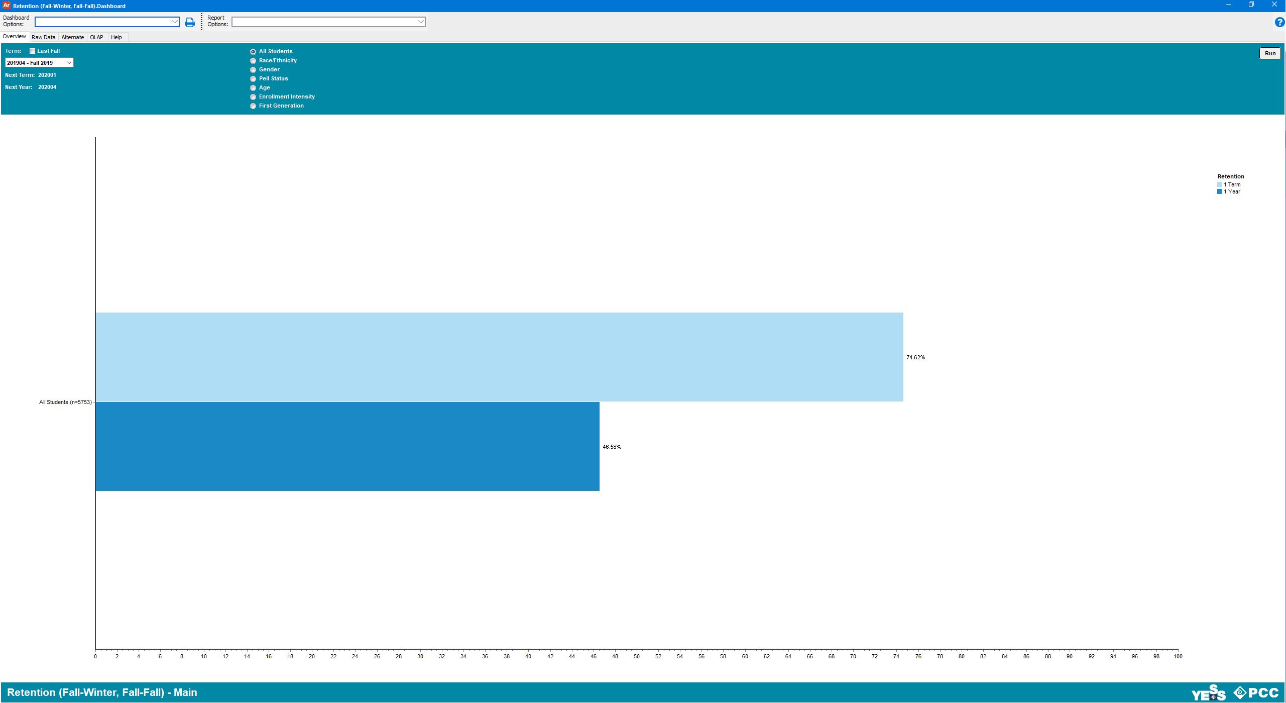 The overall retention rate of all students selected within the parameters of this report will populate.