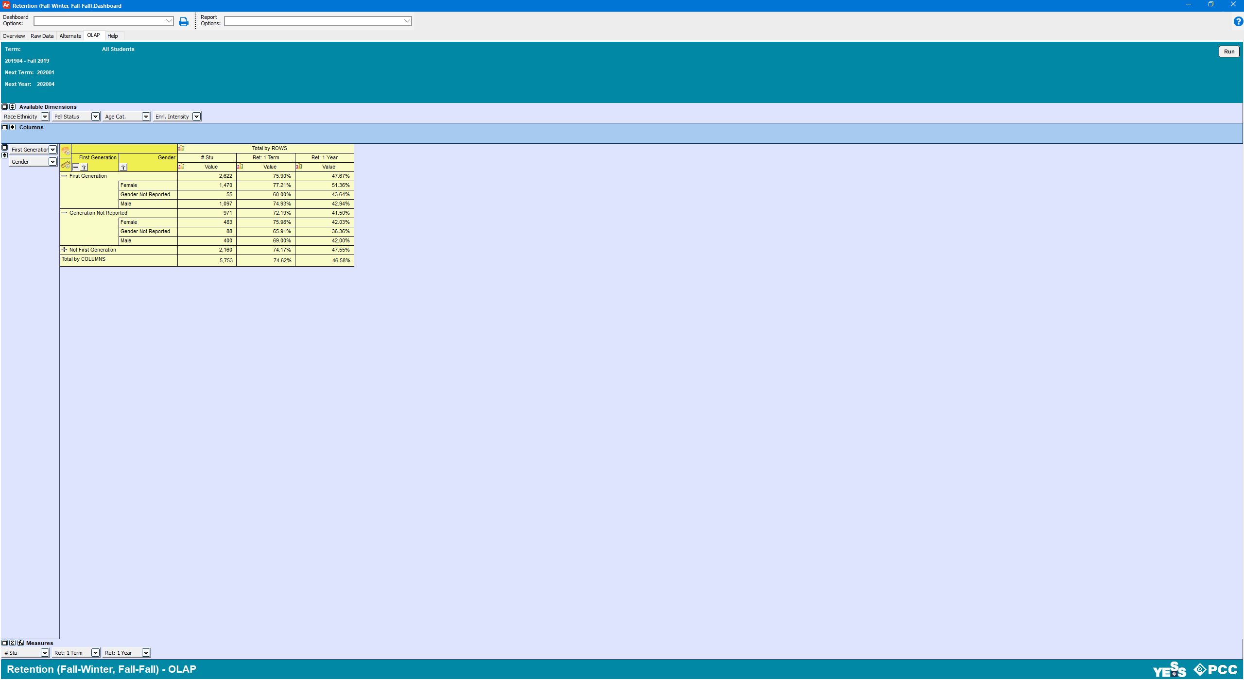 This tab provides an OLAP cube, which allows the highest amount of customization of how the data is displayed. The manipulation of OLAP cubes is beyond the scope of this documentation. For training on how to effectively use an OLAP cube please see external documentation or training courses.