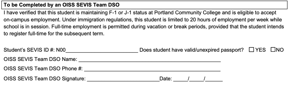 - After the hiring manager has completed their section, the student must take this form to the OISS to complete the last section.