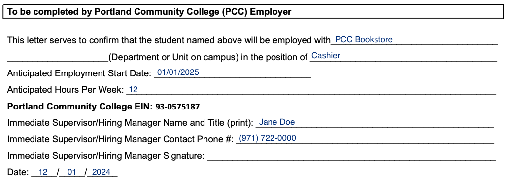 The hiring manager must complete the second section of the Social Security Verification form in order for a student to apply for a Social Security Number.