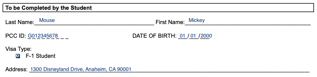 - Current PCC I-20 (Must be printed on paper with your signature in pen.)
