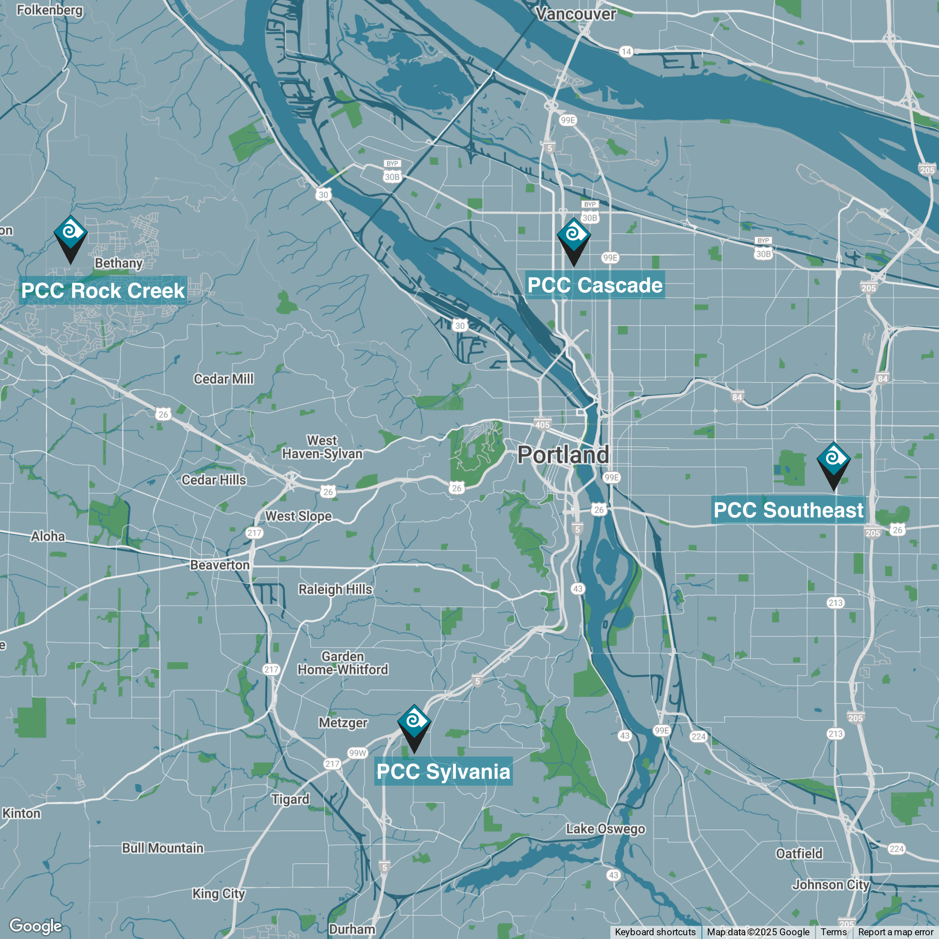The Sylvania Campus is located in southwest Portland between Tigard and Lake Oswego. As the oldest and largest of the PCC campuses, Sylvania has many unique features and specialized programs. An impressive fitness venue, a state-of-the-art theater facility (the Performing Arts Center), and an innovative MakerLab for students to create anything their minds can envision are just a few of the many amazing places to visit while on campus. Sylvania is the place for innovation, community collaboration, and individual growth. Stores and restaurants are accessible, but it is not as urban as Cascade and Southeast campuses. All PCC shuttles go to the Sylvania campus when operating. Shuttles do not operate on weekends, holidays, or during Summer term.
