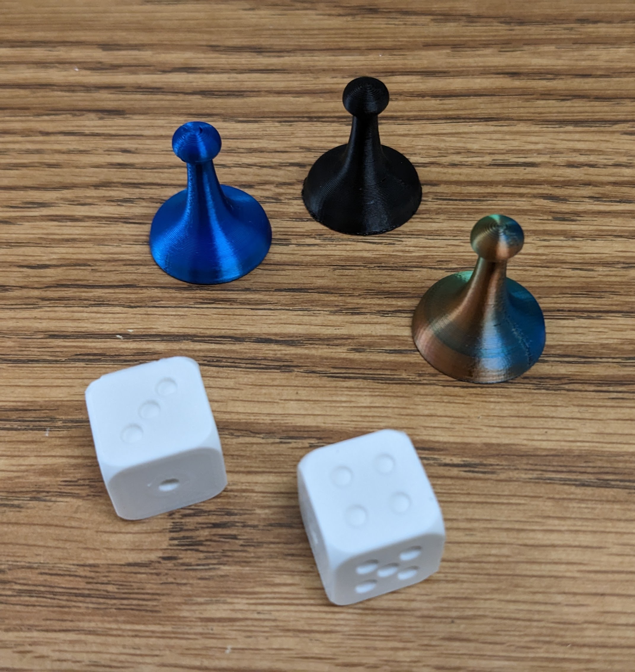 3D printed dice and game pieces