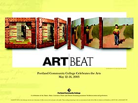PORTLAND, Ore. – Seventeen years and it remains Portland Community College’s showcase festival.Art Beat 2003 will take over the PCC campuses for the 17th consecutive year, offering students and the community access to local, regional and national artists as well as an extensive collection of visual art, dance, music, theater and literary events to help expose them to art. Art Beat 2003 is set for May 12-16. Each campus will feature a variety of performances, art displays, interactive demonstrations and workshops. The best part of Art Beat is that it is free and open to the public.”Art Beat is, above all else, a celebration,”said Doris Werkman, Art Beat committee member and PCC speech instructor. “It is celebrating spring by celebrating the arts. Our hope is to bring something new to our campuses, to expose people to some form of art they may never be able to see, or wouldn’t necessarily choose to see, and have them come to appreciate it. In part, our goal is to allow people to see how art connects our worlds together, how engineering connects with art, how mathematics connects with art.”This year’s featured artist is painter Trude Parkinson. She received her master’s degree in drawing and painting from Arizona State University and has an impressive history as a professional artist through teaching, one-person and group exhibitions, public art exhibitions, and from grants and awards. She is represented by the Alysia Duckler Gallery in Portland. The three pieces selected by the Art Beat committee for this year’s featured work represent part of Parkinson’s “Memory and Analogy: Before and Beyond Narrative”series. Parkinson will present a slide lecture from 4:30 to 5:30 p.m. on Monday, May 12 in Terrell Hall 122 (Cascade Campus), from 11 a.m. to noon on Tuesday, May 13 in the Little Theater (Sylvania Campus) and from noon to 1 p.m. on Wednesday, May 14 in the Forum of Building 3 (Rock Creek Campus).To read more about Parkinson and get a full schedule of the Art Beat 2003 events, go to the Web site:Art Beat Web Page. Other highlights during Art Beat 2003 include music and dance with OboAddy, who will perform from noon to 1 p.m. on Monday, May 12 at the Student Center cafeteria (Cascade), 11:30 a.m. to 12:30 p.m., Tuesday, May 13 at The Forum (Rock Creek) and noon to 1 p.m. on Wednesday, May 14 in the Performing Arts Center (Sylvania). Be prepared to move your feet as you listen to the “Magician of the Drums”as Obo Addy and his troop share the many rhythms of Ghana, West Africa, his homeland. Not only is he a master percussionist, he is also a singer whose harmonic ideas and expressive vocal tone demonstrate the connections between West African and African-American singing styles. New York performance artist David Leslie will take the stage from 1 to 2 p.m. in ST 107 (Sylvania) on Monday, May 12 and The Forum (Rock Creek) on Tuesday, May 13. Leslie is known for his elaborate, farcical and often dangerous stunts that satirize and offer commentary on the male myth-making apparatus of contemporary media culture. Pulitzer prize-winning Oregonian writer and author Tom Hallman, Jr., will conduct a reading from 10 to 11 a.m. in the Little Theater (Sylvania) on Wednesday, May 14. Hallman, Jr. will speak about his recently published nonfiction book, “The Boy Behind the Mask,”which tells the story of Sam Lightner, an Oregon high school student with a rare medical condition causing a severe disfigurement of his face. Other events include music with Grupo Condor, and the musical travelogue of 3 Leg Torso, hip-hop by Young Fame, painter Marlene Stoddard-Hayes, and the best of the Northwest film Festival. “In these troubling times, we want to bring some sort of pleasure, some positive energy, into our lives. What better way than to celebrate Art.”Werkman added.Parking at all three campuses is free during Art Beat 2003. The events will be held at the Cascade Campus (705 N. Killingsworth), Rock Creek Campus (17705 N.W. Springville Road), and the Sylvania Campus (12000 S.W. 49th Ave.) You can view the Art Beat 2002 schedule on the Internet at: artbeat.pcc.edu. For more information, call 503-977-4270. Those needing interpreting or other accommodations, call the Office for Students with Disabilities, 503-977-4341 voice, 503-246-4072 TTY.