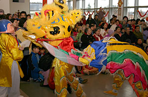 The Asian New Year Celebration, featured Chinese dances, martial arts, and an Asian dances by staff. Demonstrations included Chinese brush painting, and paper cutting workshops. Also, there were various tables showcasing Asian art products for sale.