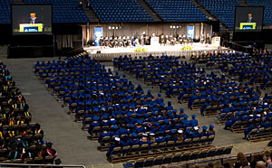 The program was redesigned and featured live music and a slide show prior to the ceremony, a live video feed during the ceremony, enhanced lighting in the arena, transcriber services, awards, guest speaker Neal Keny-Guyer, chief executive officer of Mercy Corps, which provides humanitarian aid for many countries around the world.The ceremony also included avocal performance by music department faculty Julianne Johnson, and, unlike previous years, graduation announcements were sold through the PCC Bookstore.