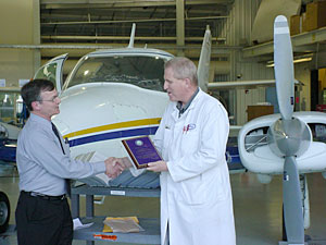 Phil Siechen, retired Aviation Maintenance Technology instructor, was honored today by the Federal Aviation Administration for outstanding service as a designated mechanic examiner for the past 18 years. The award was handed out by an official from the Portland Flight Standards District Office.