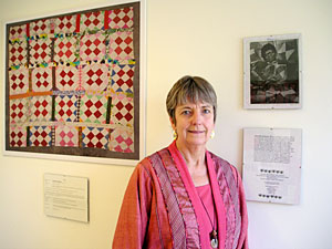 The Hattie Bell Anderson Quilt Collection has a new permanent home in Jackson Hall, thanks to the generous donation of quilt historian Mary Bywater Cross (pictured). The collection consists of four quilts, handmade from strips of colorful cloth, and made as far back as the 1930s.
