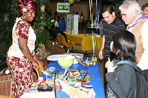 A student from Congo (left) introduced many people, young and old, to the culture of her country during the International Student Showcase.