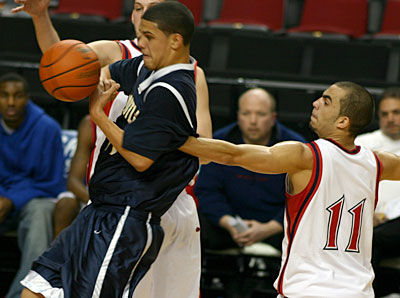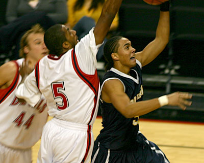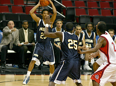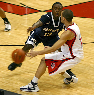 PCC guard Shawn West, a business management major, plays some tough defense early in the second half.