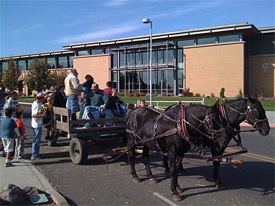 The Harvest Festival, which featured hayrides, attracted more than 1,000 people on Saturday, Oct. 25. There was a significant focus this year on sustainability, featuring cornstarch products used at the sampling tables (pumpkin recipes); no printed agendas or maps were used as information was disseminated via several large signs; reusable products were utilized throughout the event minimizing use of disposables and therefore minimizing the impact on the waste stream; and tours were given throughout the day highlighting the kitchen waste-to-worm bin-garden loop.