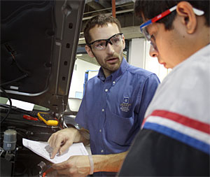Students in the GM ASEP program are required to find a job with a company dealer in the local area to continue their studies. Half of the students’ earned credit comes from their work at the dealerships.
