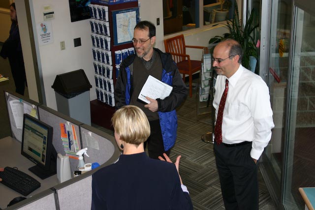 “This visit was an opportunity to meet both with DHS managers and with front-line workers,” he wrote. “I encountered both dedication and a lot of concern. DHS offices around the state have been reconfiguring their operations in order to deal with the soaring need, and the new system has a lot of potential. But the budget cutbacks under consideration will make it very difficult to deal with the crisis. There will likely not be enough staff on hand to deal with the clients as they come in or to give them the time that they need.”