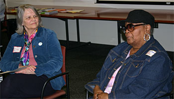 Jan Abushakrah, faculty chair of the gerontology program and sociology instructor at Sylvania, listens to Alberta Simmons, winner of the “Ageless Inspiration Award.” Simmons, a community activist dedicated to creating affordable housing especially for seniors, shared her life’s story with soon-to-be graduates of the gerontology program at the annual “Careers in Aging” networking event held April 16.