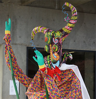 If you were around on Thursday, April 23, you might have seen this creature. It was a student who was walking with other students, wearing their artwork, through the Sylvania Campus as part of Marie Sivak’s 3-dimensional art class.