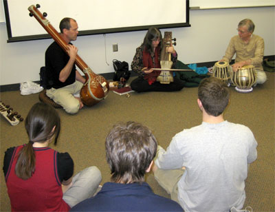 “Rose Okada and Friends” played the tablas, tambura and sitar for Sylvia Gray’s “History of India and the Subcontinent” class at Sylvania. The presentation was part of the ongoing Asian Studies Lecture Series. Okada is a musician and teacher of classical Indian music. The audience of 12 was transfixed by the gentle, nature-like rhythms created by tablas, tambura and sitar, before engaging in a question-and-answer session with the visiting musicians.