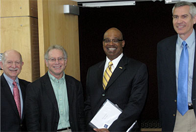 Left to right, Mark Schneider, former director of the United States Peace Corps; Art Schneider, interim division dean, Business, Computer Technology and Real Estate, PCC Sylvania; Preston Pulliams, PCC president; and Jim White, vice president, operations, Mercy Corps.